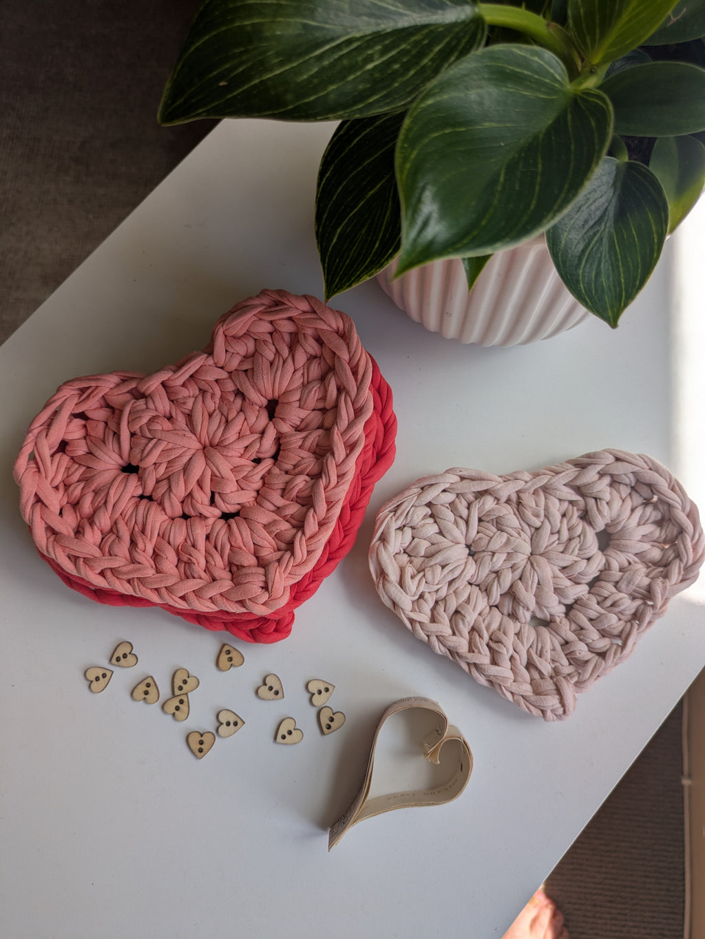Tickled yourself pink with a pretty set of handmade jersy cotton heart coasters