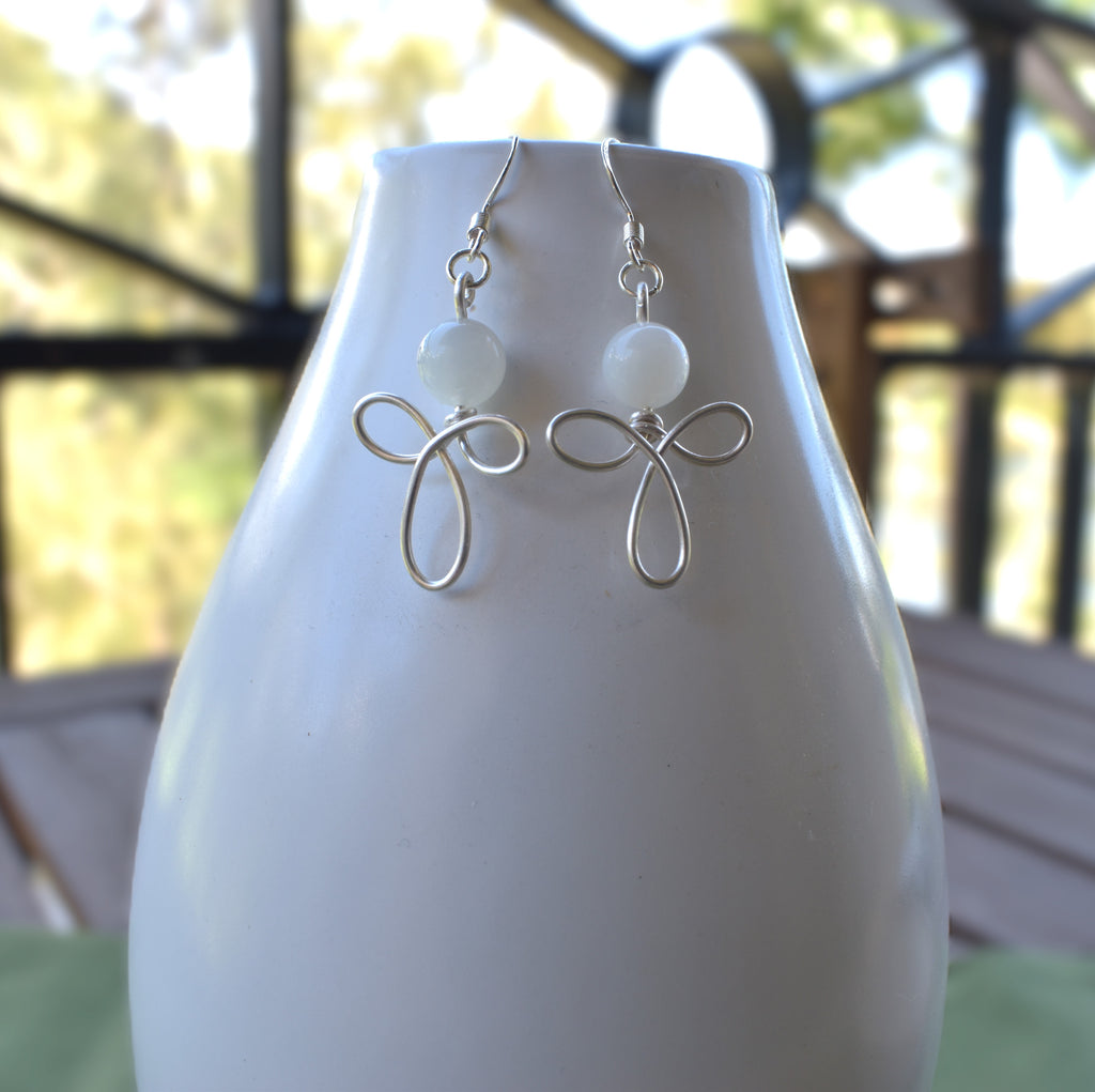 The wire is worked slowly to create flowing lines that feel light and unforced. Moonstone beads are chosen for their soft glow and subtle translucence, catching the light with quiet movement and echoing the calm, reflective quality of moonlight. Each stone has its own natural character, making every pair unique.