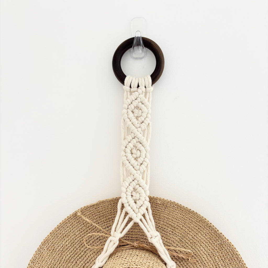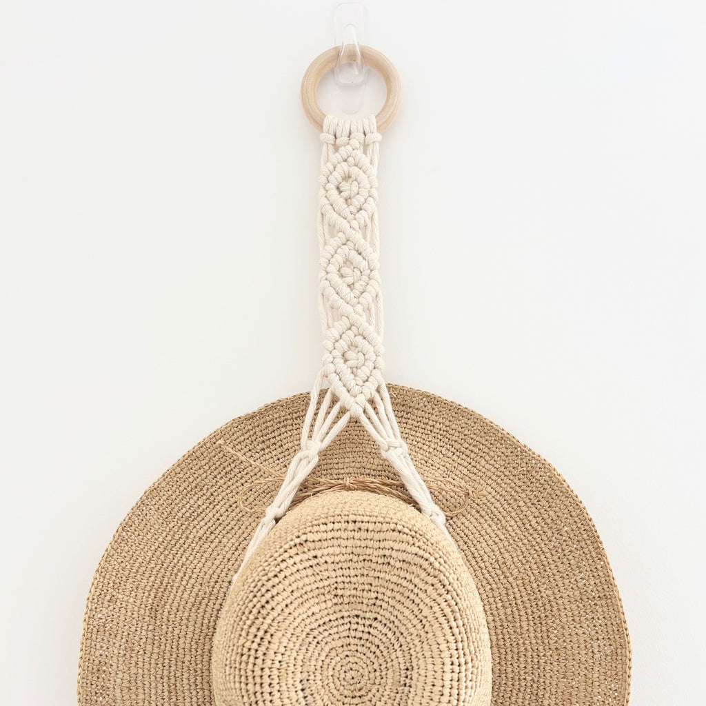 Keep your hats organised and on display with our handcrafted macrame hat hanger – the perfect solution for stylish hat storage and boho home decor. Whether you’re hanging your favourite wide-brim, a trusty sun hat, or a felt Akubra, this hanger brings a relaxed coastal charm and a touch of warmth to your space. Handcrafted with Australian made cotton cord.