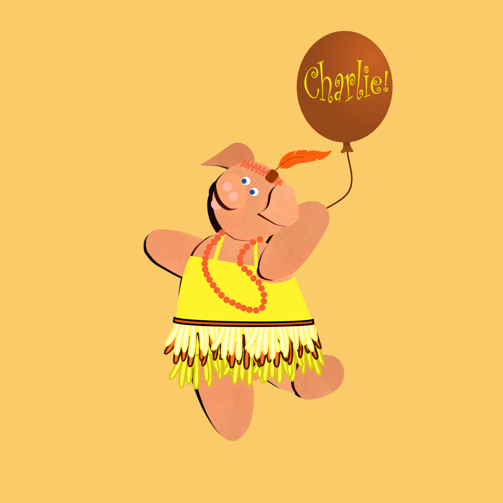 Delightful mini art with wooden stand. 1920’s flapper pig shimmy-shimmy-shaking with bright blue balloon. 100mm x 100mm archival-quality print on Hahnemuhle Photo Cotton Rag 308gsm, one of the world’s most popular Fine Art papers. Sanded pine stand 70mm x 35 mm x 18mm approx. Perfect for display stand, book shelf or bedside table. Gorgeous gift for boys and girls!
