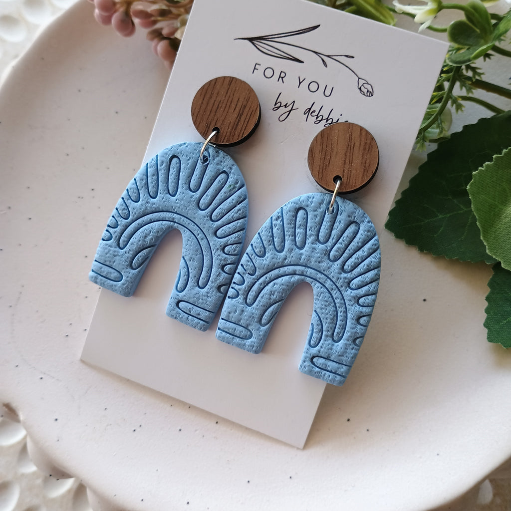 Light blue polymer clay sandpaper texture finish , wood stud top .
