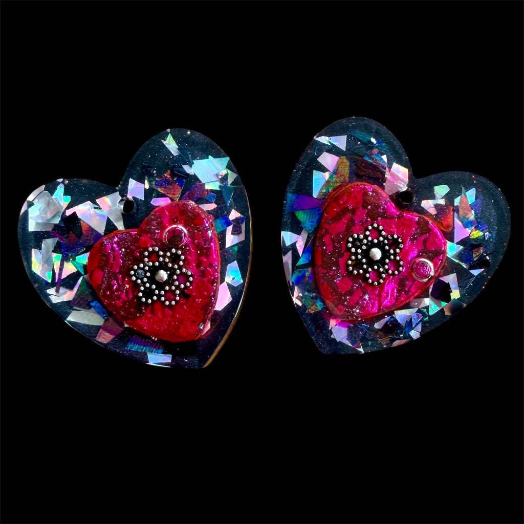 Each heart is handmade from resin using high quality pigments, alcohol inks, glitters, sequins and are completely unique.