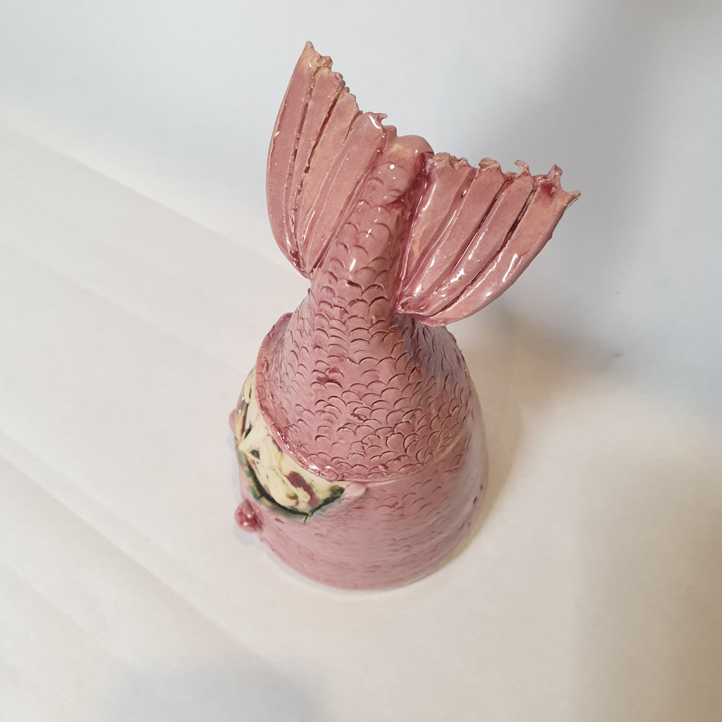 Her body is adorned with a delicate scale pattern, painted in soft pink, then fired and finished with a darker pink wash to highlight every detail. Standing around 20 cm tall, she brings a touch of magic and whimsy to any shelf or tabletop. Each piece is lovingly handmade, making her truly one-of-a-kind.