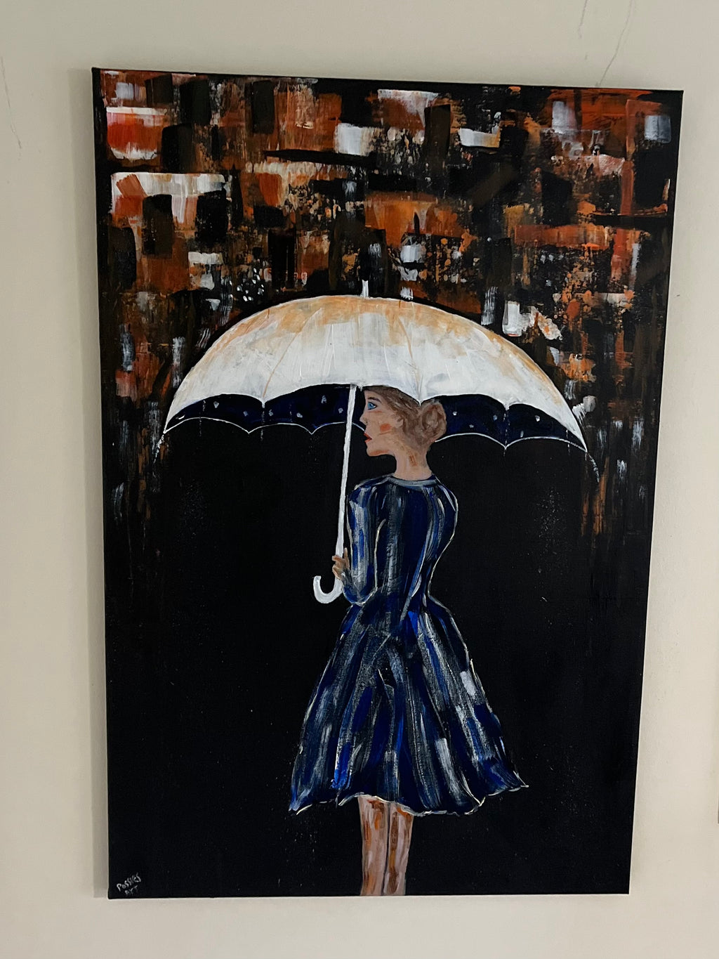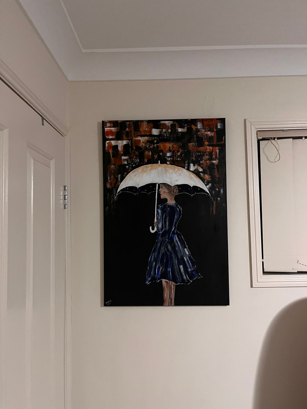 Original acrylic painting on stretched canvas is called “Rainy Night” and was hand painted by me. Measurements are 50x 76cm