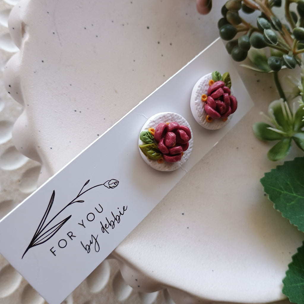 2cm polymer clay statements studs hand shaped leaves and flowers.