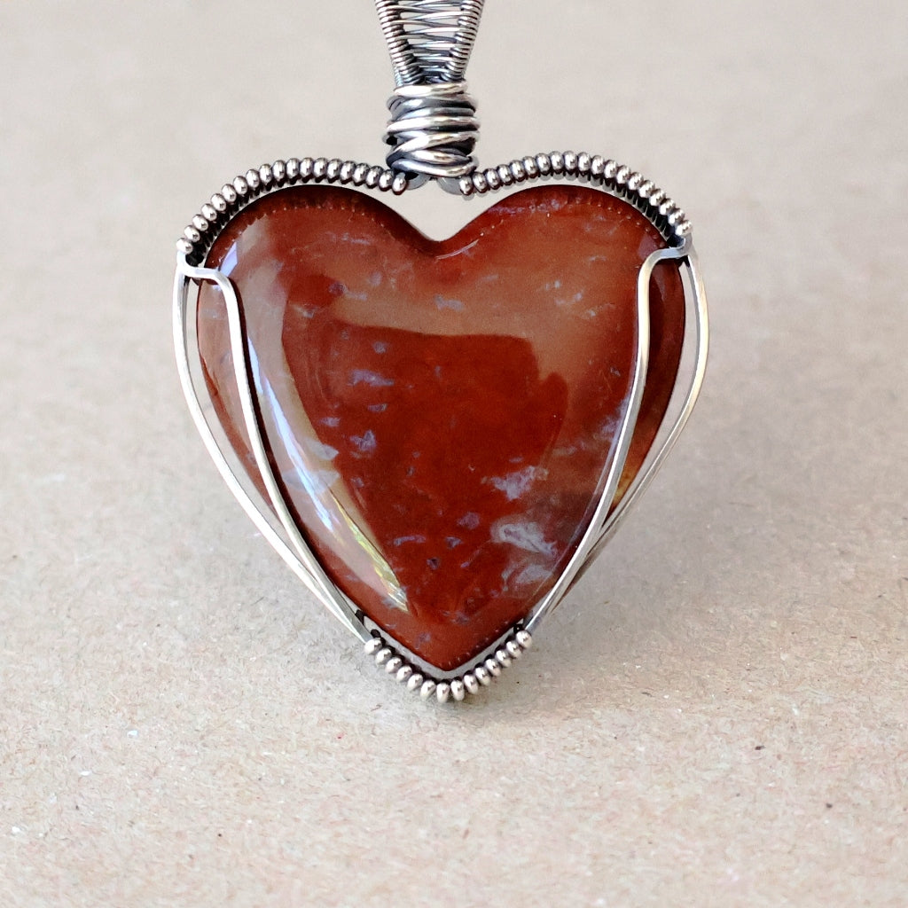 Custom Order - Red Jasper Heart Pendant - Talisman of Strength
