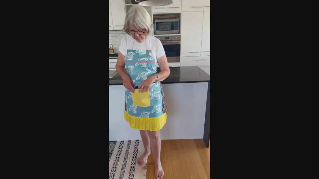 This retro telephones pinafore apron with pocket will bring a smile to your face every time you wear it. When life gets messy, wear an apron.