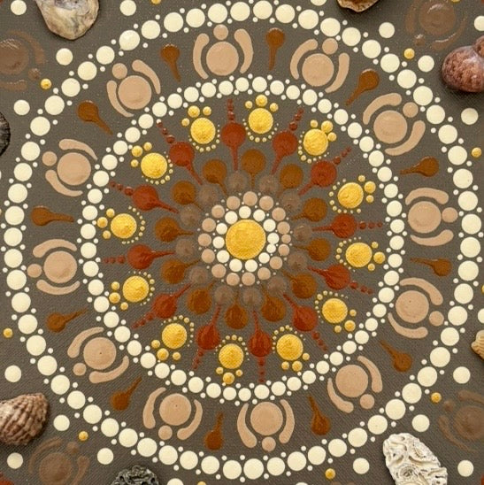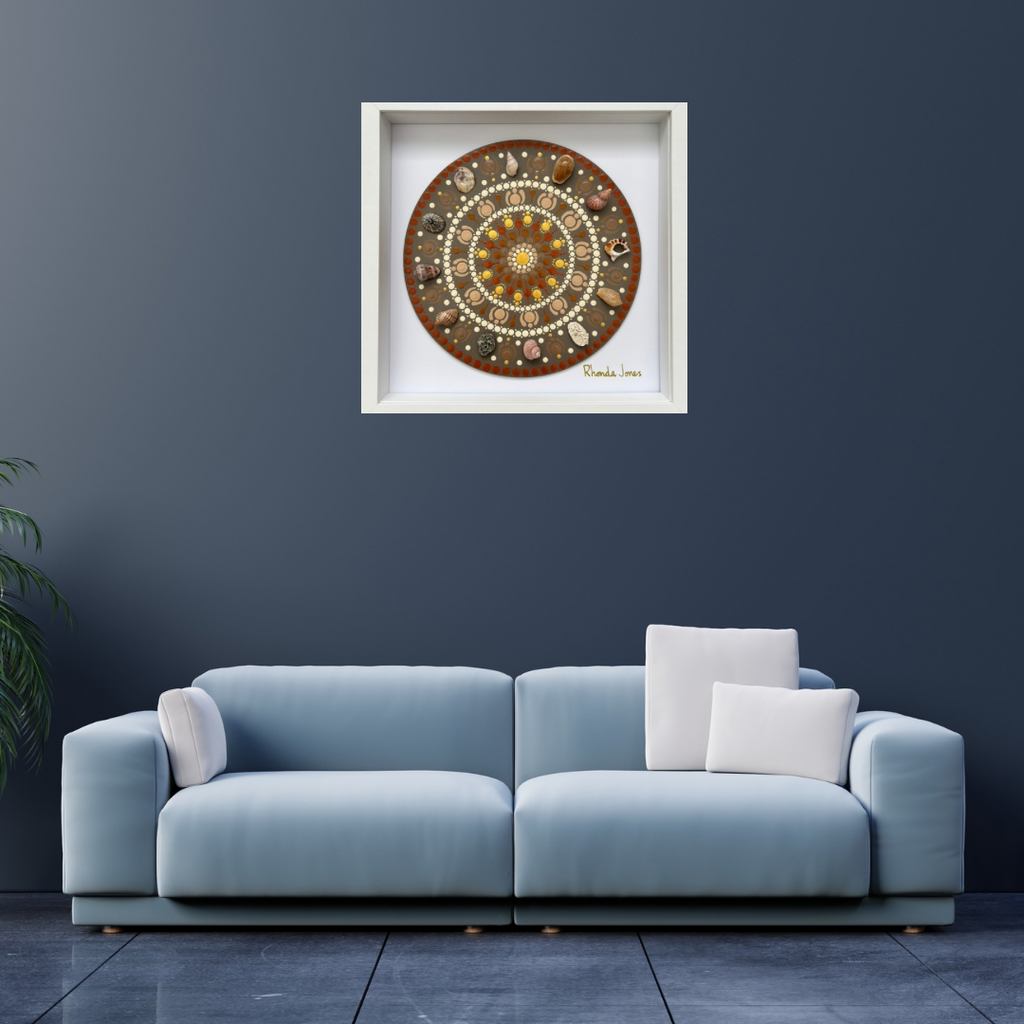 A mandala is an ancient circular design of repeated patterns and colours that radiate from the centre circle and were used for meditation and healing. Rhondalas Mandalas are a modern take on mandalas, painted for the purpose of developing creative expression to bring balance, harmony, mindfulness and a sense of calm into the mind. Every mandala I hand-dot is created with intention that reflects a moment or feeling in time.