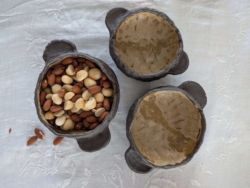 This listing is for a set of three handmade bowls. Shaped slowly by our hands and finished in earthy, natural tones, reflecting love and respect for our glorious coastline.