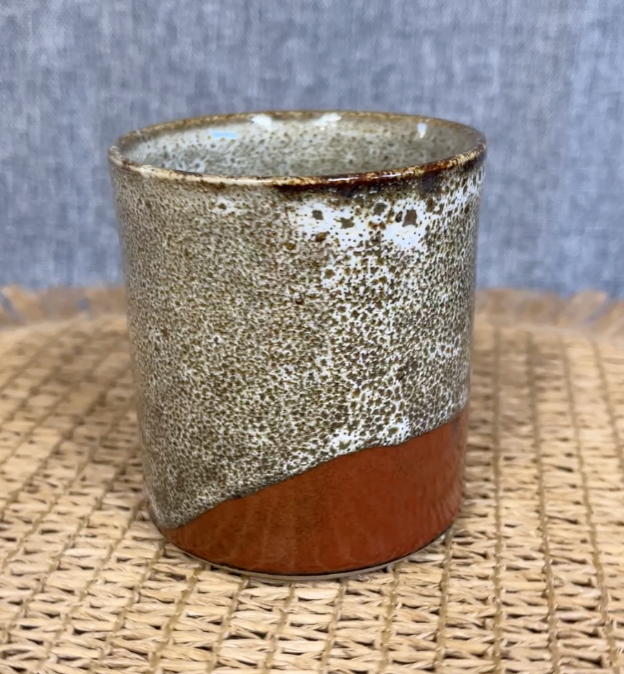 Grounded in natural tones and timeless craftsmanship, this wheel-thrown ceramic tumbler is a warm and tactile companion for your daily rituals. The rich, earthy glaze flows from a into deep rust tones, evoking the texture of stone and soil of my hometown, the Mallee region. Perfect for coffee, tea, or your favourite evening pour.