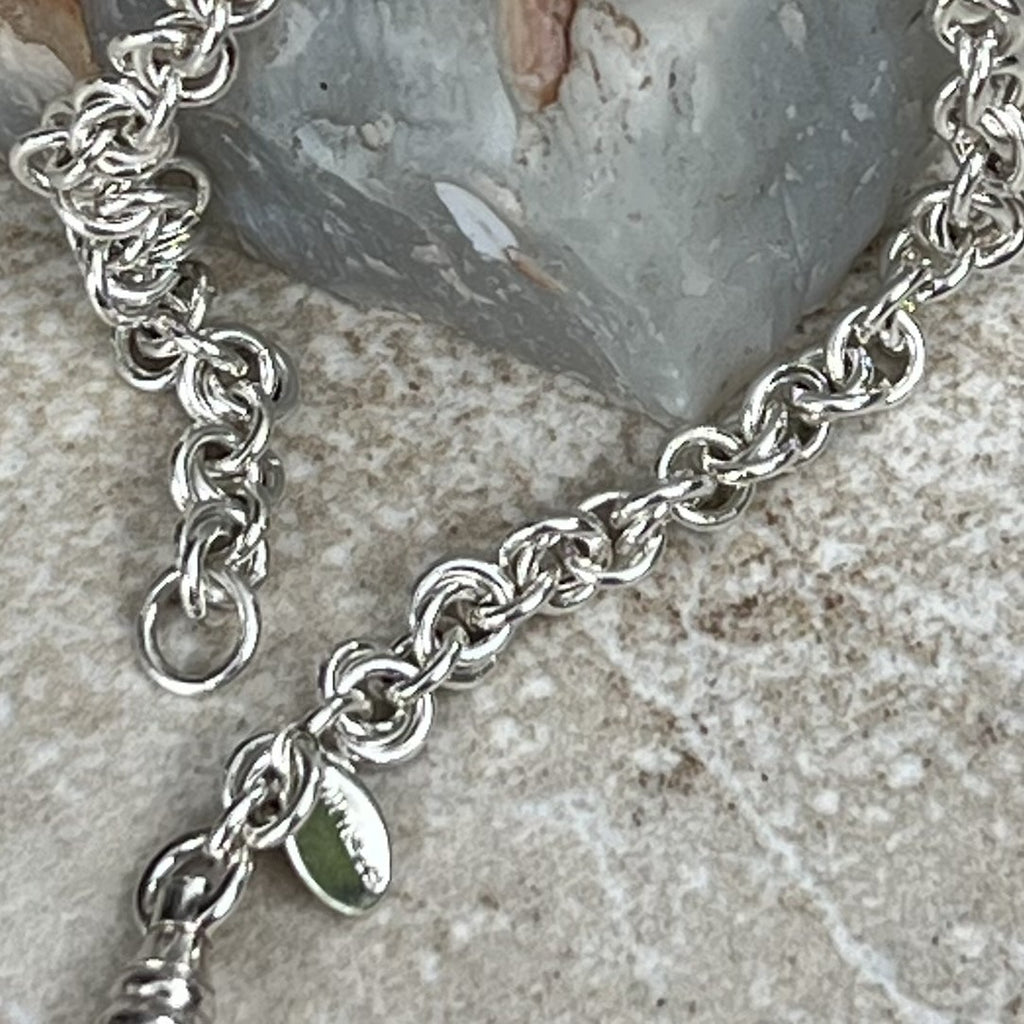 To keep its brilliant sheen, it is recommended to occasionally dip the bracelet into a silver cleaning solution.