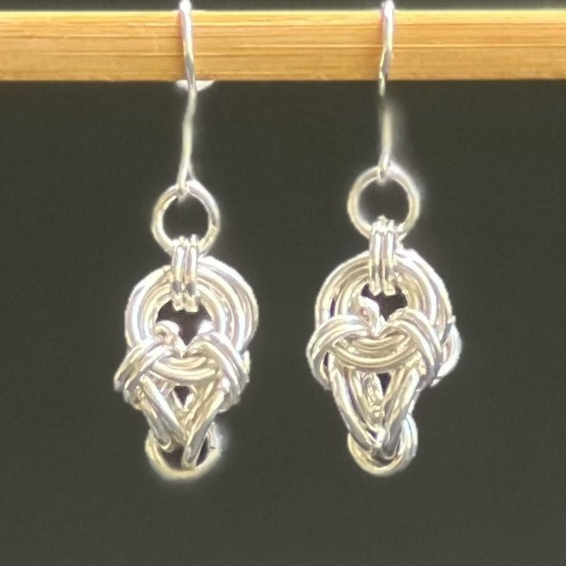 These simple and elegant earrings have been woven into a variation of the Japanese Weave, the "Polyhedron", designed by Rebeca Mojica.