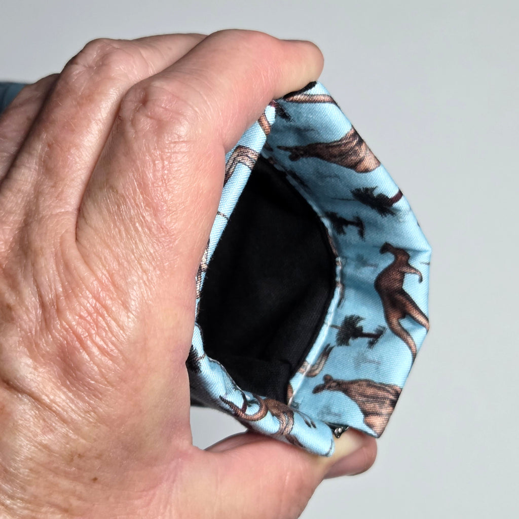 FABRIC - Quality blue cotton with a kangaroo design. Fabric placement may differ slightly from photographs.