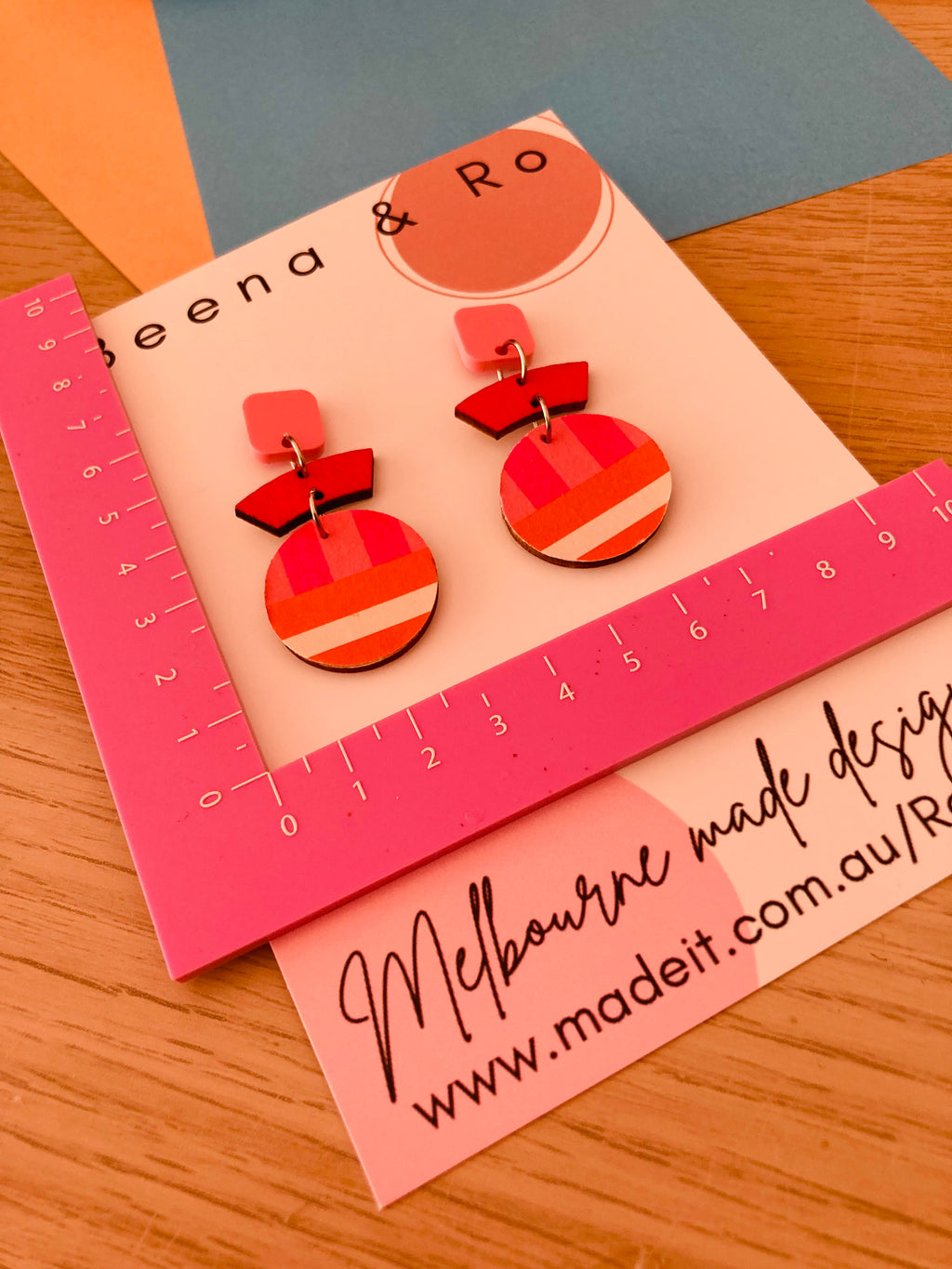 • Handmade in Melbourne using printed paper & hand painted wood to form a super vibrant pair of earrings