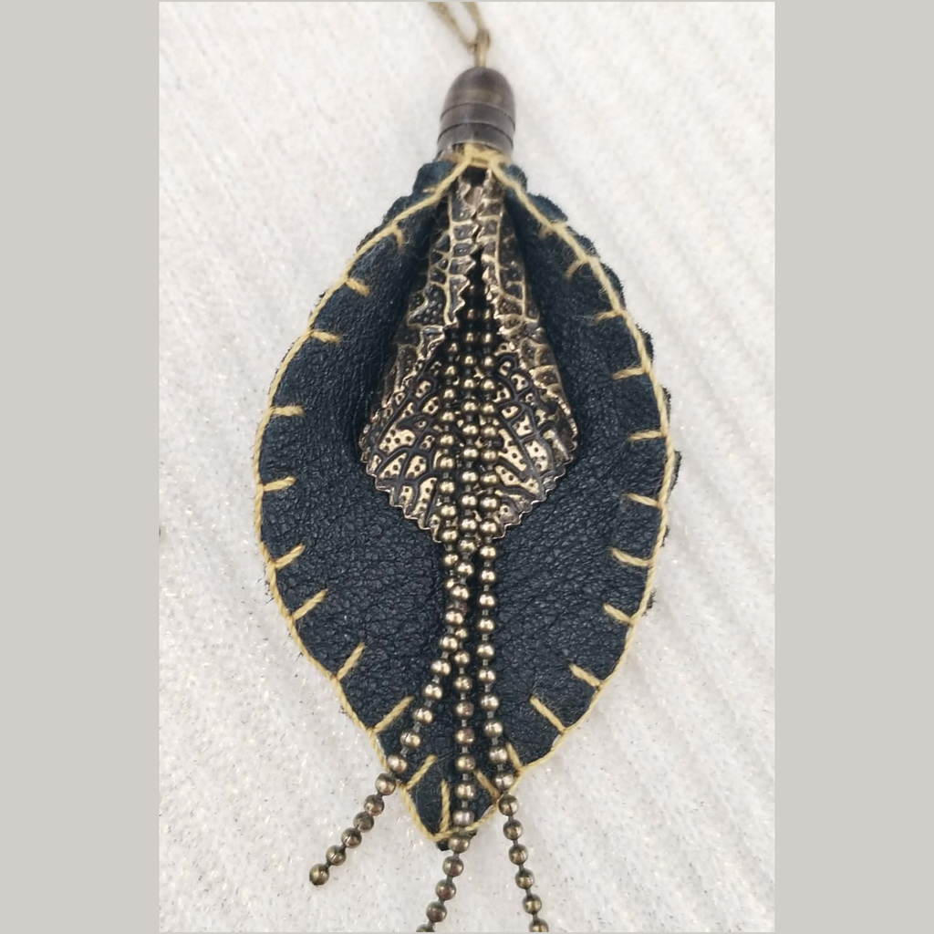 The set is made from leather and metals.