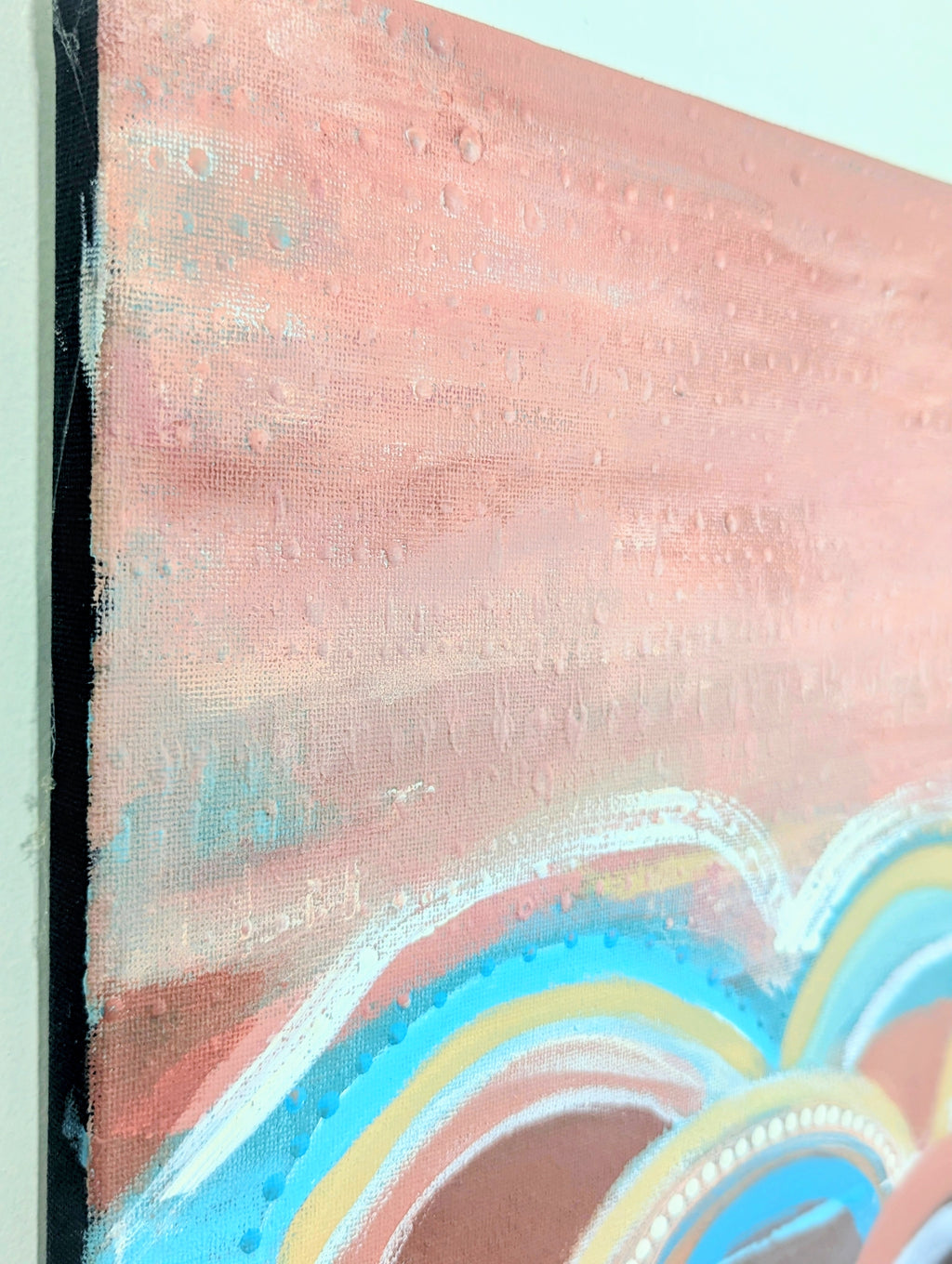 The painting is a contemporary abstract landscape Original —inviting the viewer to drift across its layers rather than focus on a single focal point. It carries a feeling of warmth shelter and comfort , and slow movement, as if the forms are gently rising together .