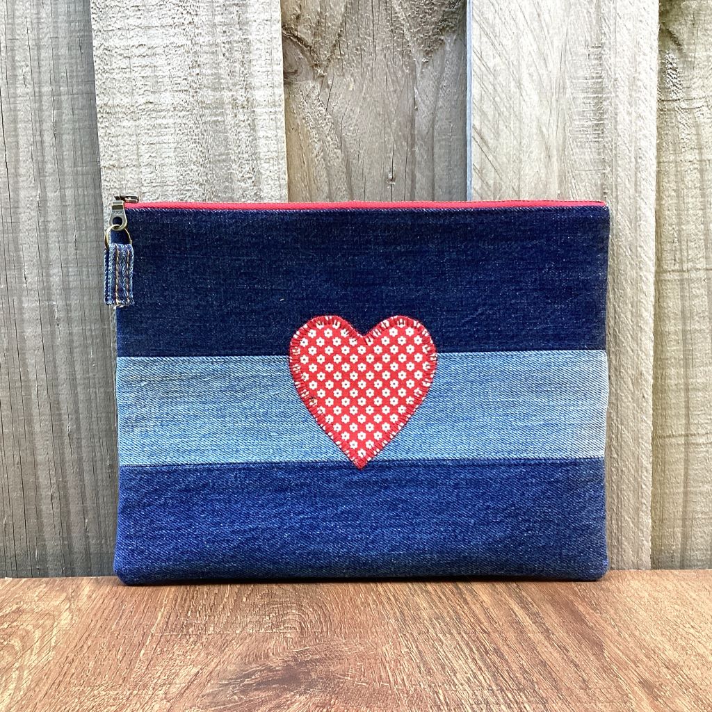 Upcycled Denim Pencil Case – Red Heart Applique