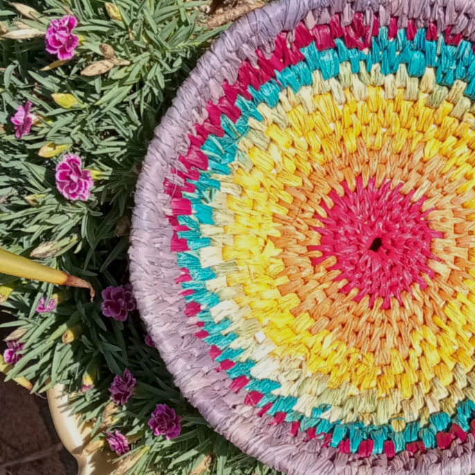 This would be a lovely basket for a child. Imagine them putting coloured stones, shells, Easter eggs, little treasures or jewelry in this sweet rainbow bowl shaped basket.