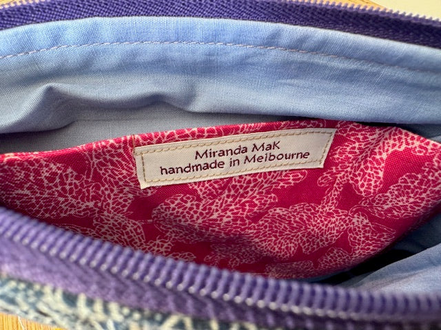 Enjoy these handmade little collage fabric artworks with bright pops of colour transformed into an unique zipper pouch featuring intuitive hand embroidery........ made carefully to last.